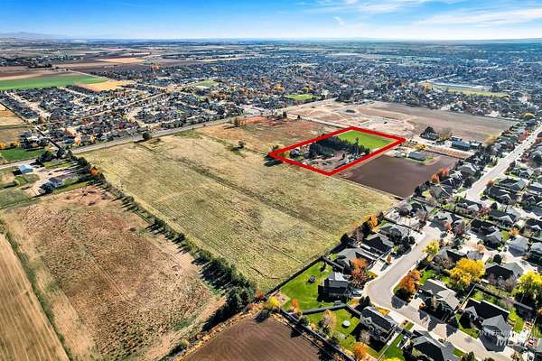 Est $8,692/moSurrounded by new development. This 4.882+/- acre rectangular parcel provides an excellent canvas for your creative development. Fenced and mostly level. Includes a 1305 sf home and some out buildings. The property includes a cell phone tower lease generating $1,148 per month in income. Located in north Kuna west of highway 69 (Meridian Rd). Surrounded by new development. Monarch Landing, a commercial subdivision is located across Hubbard. Additional new development is surrounding this property to the east and north.