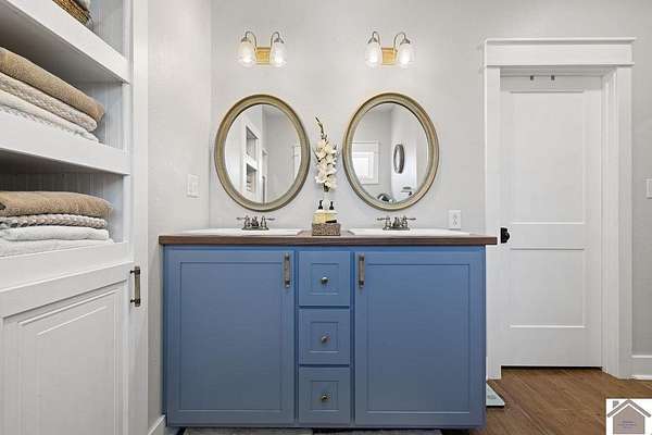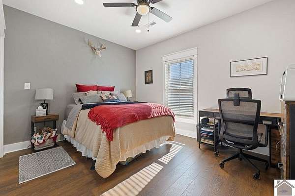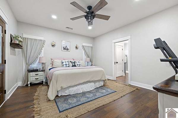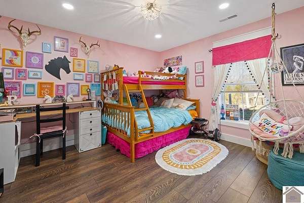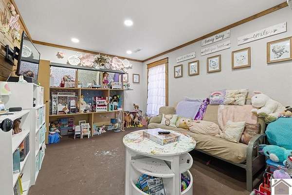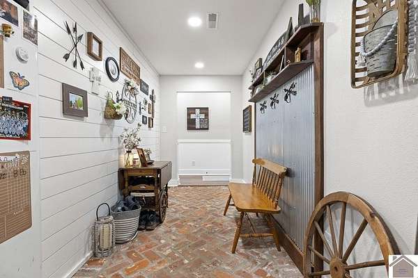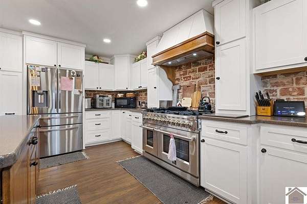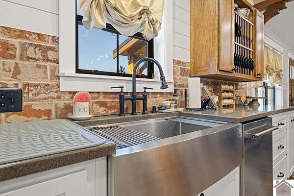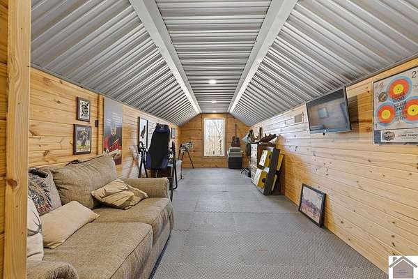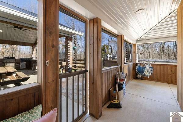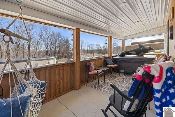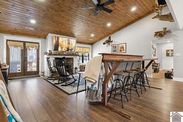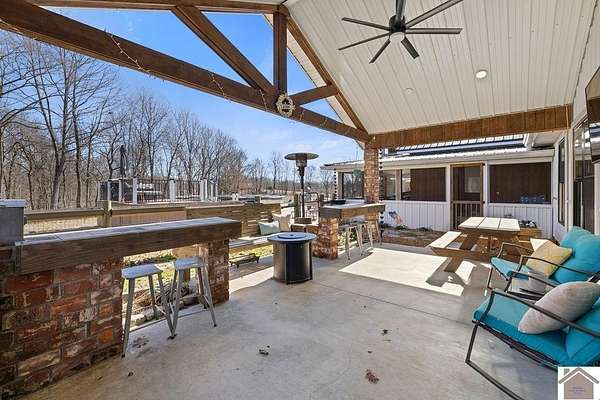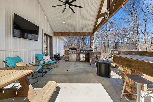 Beautiful modern farmhouse-style home located at 1800 Wray Road in Wingo, KY featuring 5 bedrooms and 3 full bathrooms with a spacious open-concept design. The main living area offers vaulted wood ceilings, exposed beams, and abundant natural light, creating a warm and inviting atmosphere. The kitchen features white cabinetry, brick backsplash, stainless appliances, and a large center island, flowing seamlessly into the dining and living areas—perfect for entertaining. The upstairs bonus room provides the perfect man cave, game room, or additional living space. Situated on 5 acres, the property also includes a horse barn and plenty of room to enjoy country living. Outdoor amenities include a covered entertainment area with outdoor kitchen and an above-ground pool, ideal for gatherings. A large attached garage/shop provides excellent space for vehicles and equipment.