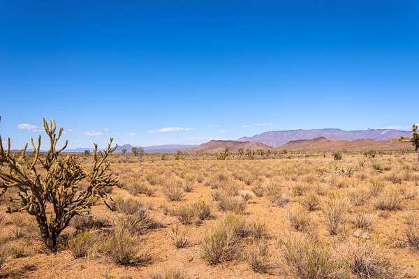 This 1.07 acre parcel is located on the outskirts of Dolan Springs and is surrounded by open high-desert terrain with mountain ranges visible in multiple directions. The lot contains scattered desert vegetation, including shrubs, cholla, and other native plants typical of Mohave County. The area has a low density of nearby homes, primarily to the north and northwest, creating a quiet setting without complete isolation.