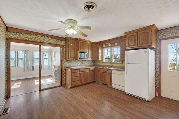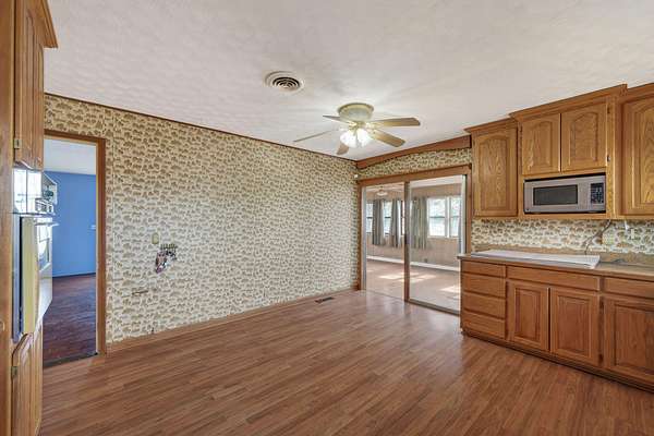 1.5 acres. Close to town. Built for flexibility.The main level features 3 bedrooms and 1 full bath, while the walkout basement expands your options with 3 nonconforming bedrooms, second living area, full bath, and second kitchen.Sunrooms on both levels give you a place to enjoy the property in any season.The 28x52 shop with concrete floors and integrated RV storage adds serious utility.A well-rounded setup with space to live, work, and spread out.