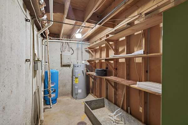 - Concrete, Exterior Entry, Finished, Full, Interior Entry, Storage Space, Sump Pump