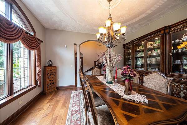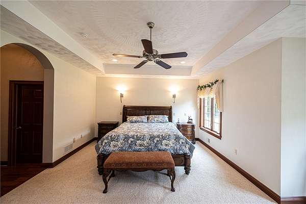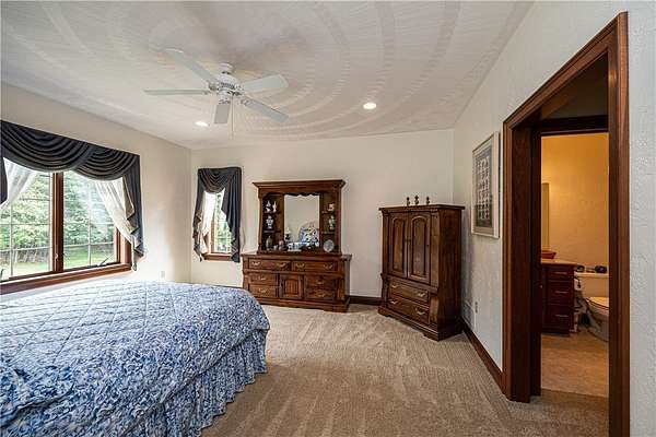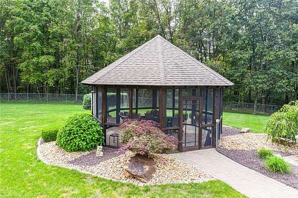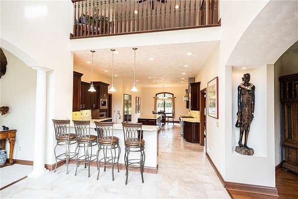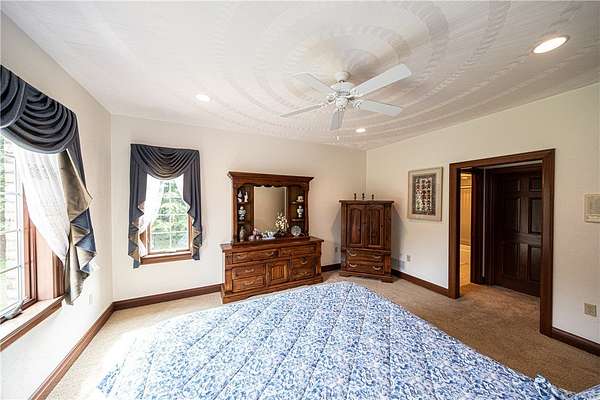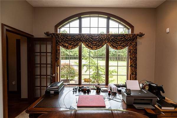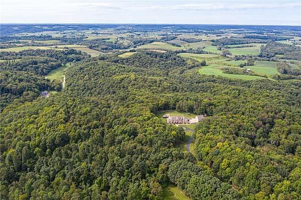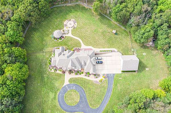 Welcome to this masterpiece, nestled in 118 acres of bliss! The gated driveway leads to a gorgeous home just waiting for you! The 4 bedroom estate, with its elegance, has so much to offer: a stunning curved staircase upon entering home; hand carved flooring; a kitchen fit for a chef with the finest amenities; natural cherry wood cabinetry with high quality finishes; Wolf ovens; warming ovens; a subzero refrigerator; and a built in expresso machine. The first floor primary bedroom, large family room and living room, an elegant dining room, wine station and office comprise the first floor. Take the elevator upstairs to 3 spacious bedrooms with private bathrooms, a bonus room, and a large loft area. The huge attic space can be utilized as extra space. The game room-level is complete with a wet bar, a gym area, theater room, and vault. This is truly an amazing home!
