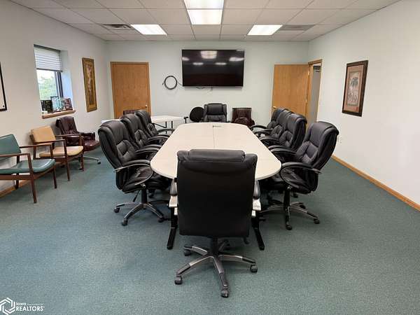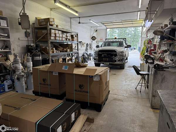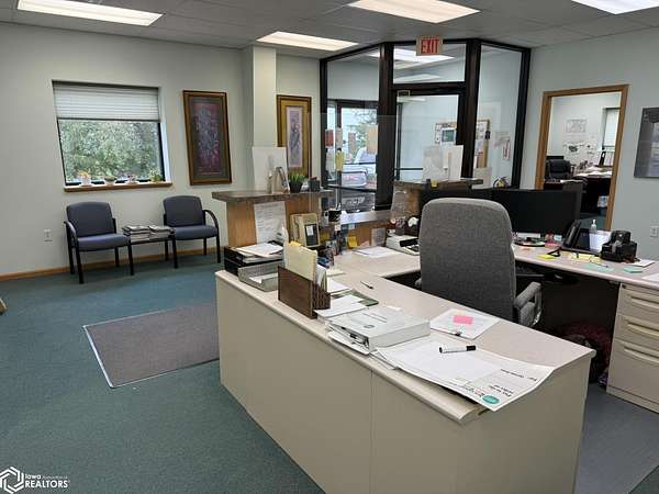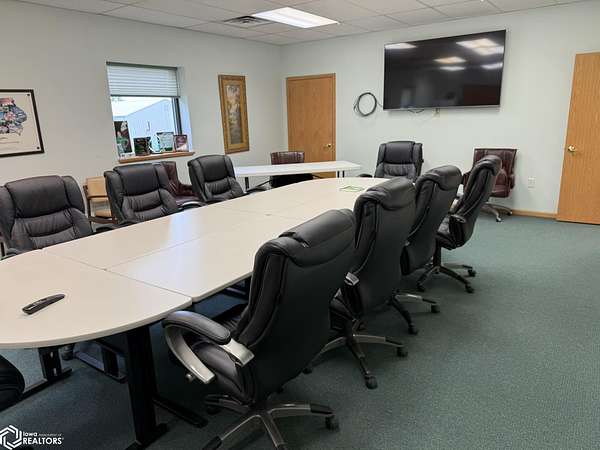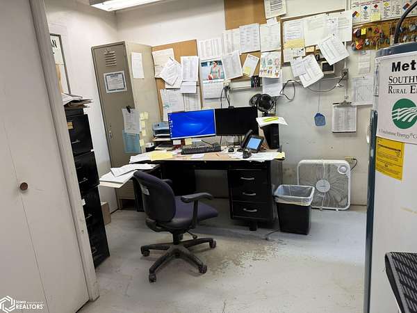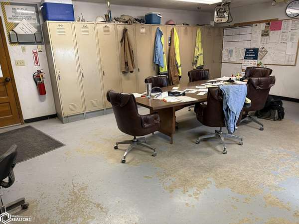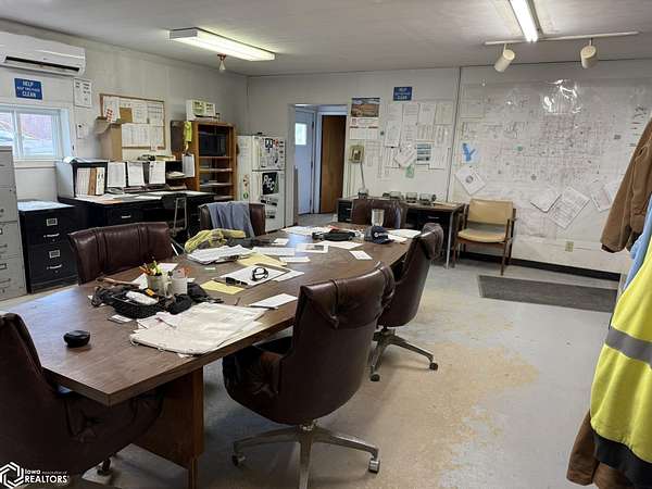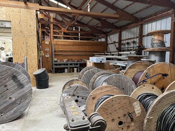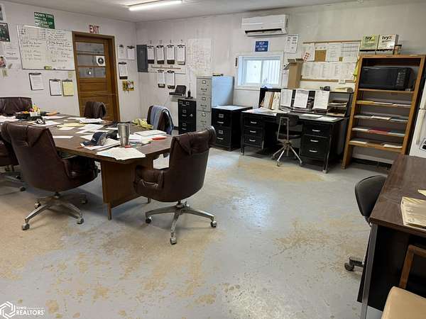 Prime Commercial Property off Hwy 148 - 1801 Grove Ave, Corning, IA Positioned on over 4 acres of land right off Highway 148 at the edge of Corning, this highly sought-after commercial property offers unmatched visibility, functionality, and infrastructure for a wide variety of businesses. This site features over 10,000+ square feet of versatile space, with both finished office and industrial/shop facilities. The property boasts geothermal HVAC, in-floor radiant heating throughout the main shop, outdoor wash bay with drain, and extensive concrete parking with drive-through space on a paved & graveled lot. Main Office Building (~2,500 sq ft): - Three private offices - Large executive conference room with kitchenette/break area - Two separate restrooms - Fully encased concrete fireproof vault room - Central heating/cooling - Brick-accented facade with professional curb appeal Main Shop (~4,000 sq ft): - Heated with in-floor radiant system - Oversized power overhead doors (12' x14') for large equipment access - Steel frame construction with reinforced concrete flooring - Metal-lined interior and insulated structure - Industrial-grade electrical service and lighting Workman's Shop Addition (~4,400 sq ft): - Additional office space, meeting room, restroom - Heated workshop bay - Large cold storage area Additional Features: - Total site size: 4.1 acres +/- - Reinforced concrete and additional graveled rear lot - Geothermal system EXCLUDED: Communications Tower