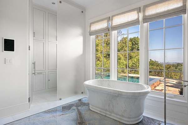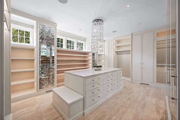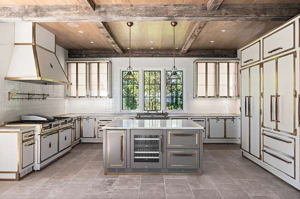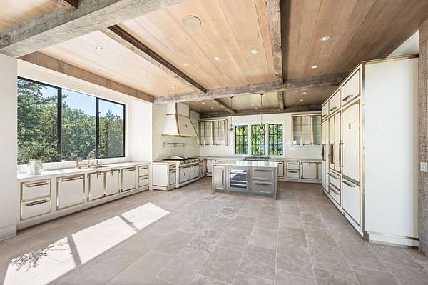 The interiors are anchored by the first and only complete Officine Gullo kitchen in the state, a showcase of Italian precision and artistry. The primary suite includes custom closets designed by LA Closet Design, bringing celebrity-level refinement to daily living. A secondary kitchen, private fitness studio with sauna and steam, a 500+ bottle European dine-in wine cellar, walk-in humidor, acoustically enhanced theater or recording studio, and secure safe room extend the home's offerings without compromise. There is no need to worry about your car collection with three oversized garage bays accommodating six vehicles, with infrastructure to expand capacity to twelve with lift systems. Finally, this home is equipped with a hydraulic elevator servicing all three levels. Each feature is not a separate amenity but an expression of a unified vision.