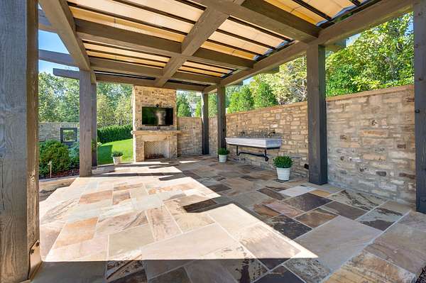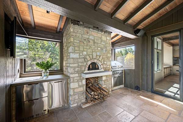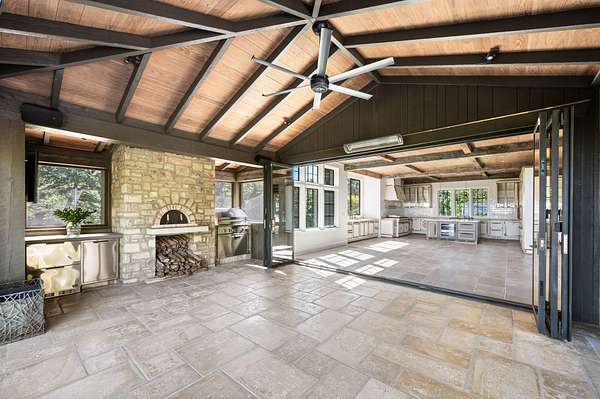 The exterior is equally purposeful. With every step, you'll find a small piece of beauty brought to life by renowned Landscape Architect, Stephen Hackney. A pergola with a ShadeFX retractable, all-weather roof defines the pool terrace, offering year-round enjoyment. A wood-fired pizza oven, infinity-edge pool and spa, and uninterrupted skyline views create the ease and elegance of a private resort.