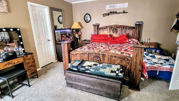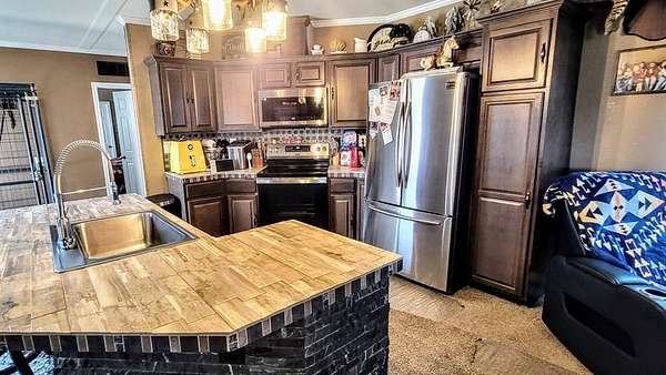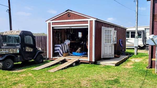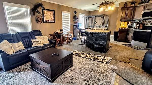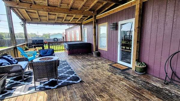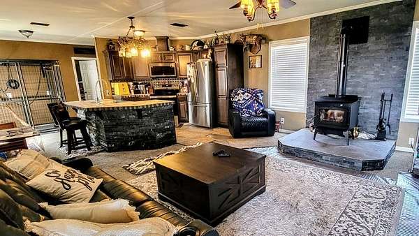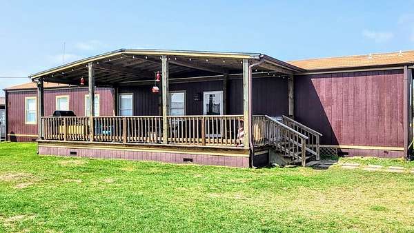 Experience the perfect blend of country serenity and coastal charm with this 3-bedroom, 2-bathroom Palm Harbor Fiesta Series home (18x80), set on 2+ acres of picturesque land. Just minutes from town, this property offers tranquil living with modern conveniences. Step inside to an open-concept floor plan featuring a spacious living and dining area, perfect for entertaining. The kitchen boasts stainless steel appliances and ample storage. Unwind in the hot tub on the covered deck, overlooking the beautiful stocked pond-an ideal setting for relaxation. Equipped for equestrian enthusiasts, the property includes a horse pasture and stable with storage, conveniently cross-fenced for separation from the home. Enjoy the best of coastal living, with bayfront fishing and outdoor recreation just a short drive away.