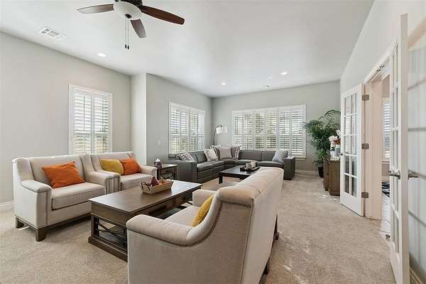 Est $4,203/moCustom built home on 4.54 acres! This stunning home offers a comfortable living space that's perfect for families who value both luxury and practicality. Large living room that's ideal for entertaining guests or enjoying quiet family time. Spacious primary bedroom with sitting area and safe room attached to the primary closet. 4 additional bedrooms with en suite baths and walk in closets upstairs. You'll appreciate the thoughtful security features including a camera system. Gated entry adds an extra layer of privacy and security. Large shop/garage that would easily fit over 4+ cars. Full home/garage generator. The convenient location offers easy access to I-35.