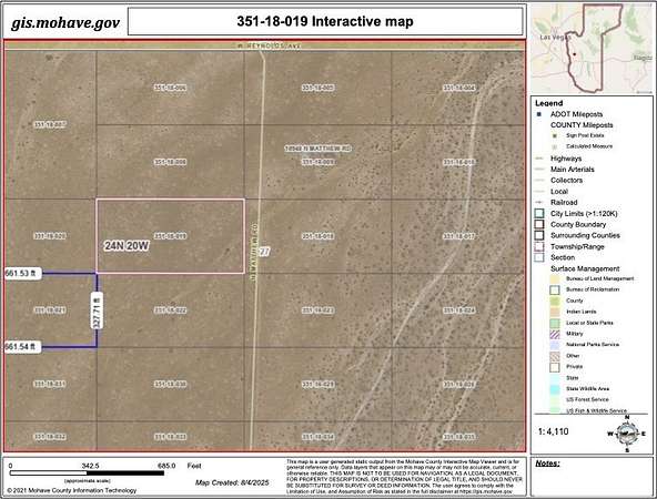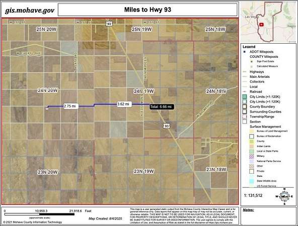 From US Hwy 93, head west on 21st Street. Travel approximately 0.5 miles on dirt road. Lot is located near GPS coordinates: 35.6124 degrees N, 114.3367 degrees W. Recommend using a truck or high-clearance vehicle for access. Road had faded and more difficult to access.