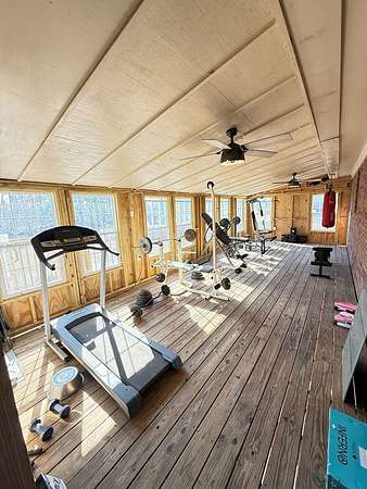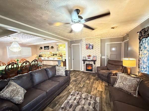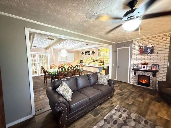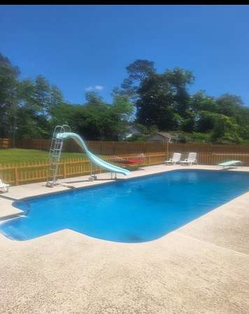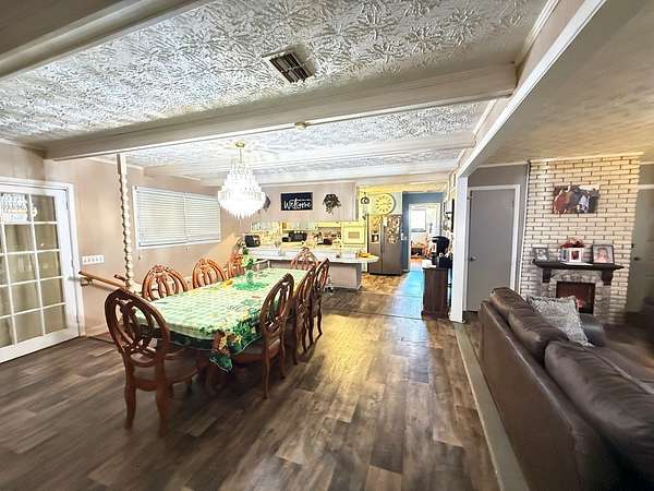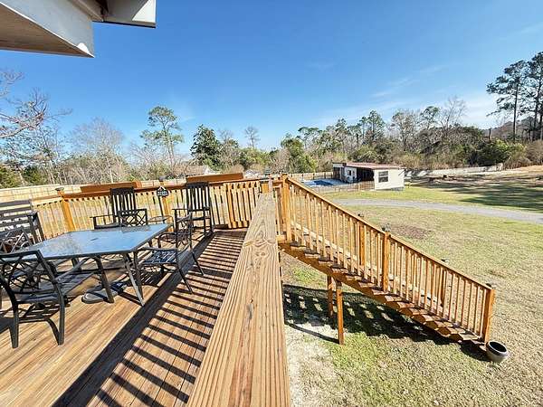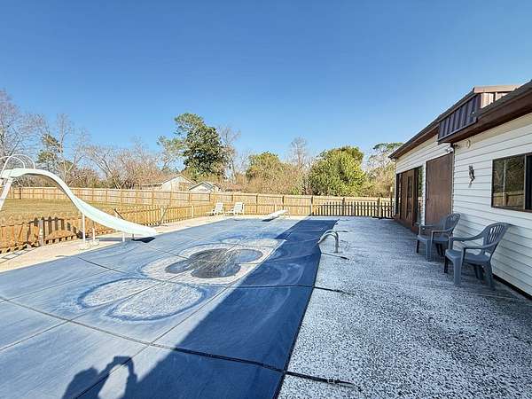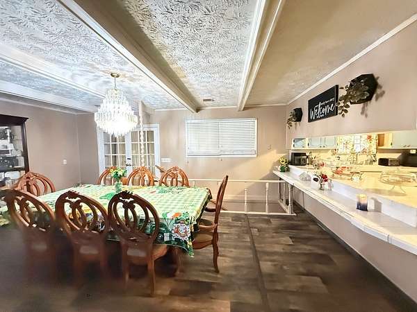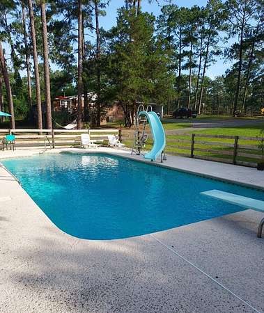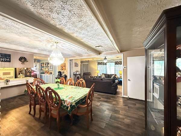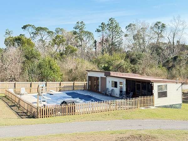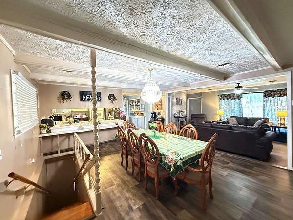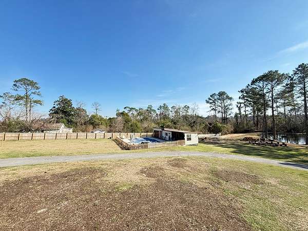 Welcome to your private retreat on 3.55 beautiful acres featuring a fully stocked pond, sparkling in-ground pool, pool house, and endless space to entertain! This spacious home offers 5 bedrooms plus 2 bonus rooms, giving you flexibility for office space, playrooms, workout areas, or guest quarters. The cozy living room into the dining area and kitchen, creating a warm and inviting space for gatherings. Step outside and enjoy your own backyard paradise! The fenced pool area includes a slide and plenty of patio space for lounging. The pool house/man cave is perfect for entertaining with its rustic bar setup and screened porch - ideal for game days, cookouts, and relaxing evenings. The property also includes a scenic pond with dock, fire pit area overlooking the water, multiple outbuildings/workshops, and covered parking. Whether you love fishing, hosting friends, or simply enjoying peaceful country views, this property has it all. Extra plus it's only 5 mins from town.