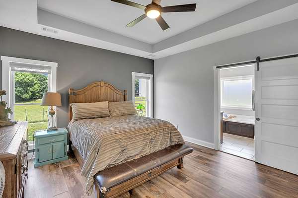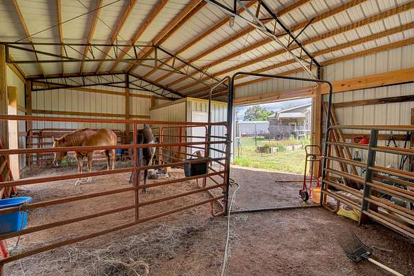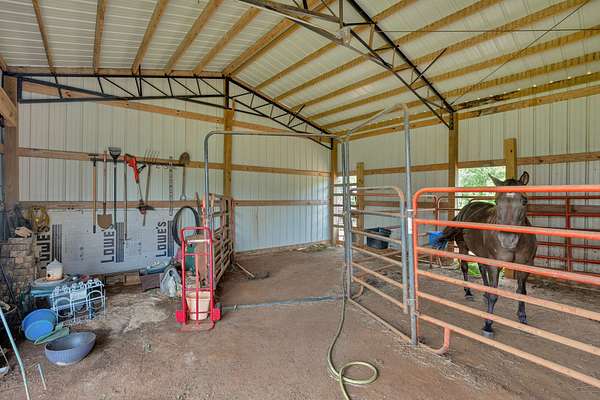 Escape the hustle without giving up convenience! This custom-built, single-story brick home sits on over 40 acres of prime land--a rare blend of open pasture and wooded space, ideal for hunting or casting a line in your own private pond. Designed with comfort and functionality in mind, the home boasts a spacious split floor plan, modern finishes, and serene views in every direction. The luxurious primary suite features private access to the covered back patio, double vanities, and a walk-in closet so large it rivals a bedroom. Each room offers generous space to fit your lifestyle, with two of the three bedrooms opening directly to the covered patio--perfect for enjoying quiet country mornings or evening sunsets. Bring your livestock and your vision--this property is fully equipped with fenced pastures, a tranquil pond, a classic barn ready for horses or cattle, and a massive workshop that can accommodate a dump truck or RV. Whether you're after a peaceful retreat, a functional ranch, or a forever family homestead, this exceptional estate delivers. Enjoy the best of both worlds: wide-open country living with city amenities just minutes away. Don't miss the chance to make this one-of-a-kind property yours! Kitchen Fridge and Air Compressor to remain with the home.