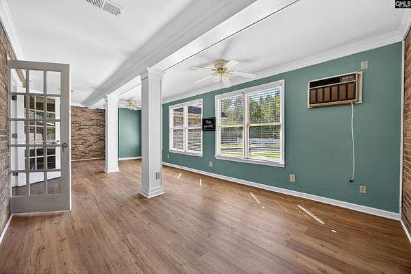 Discover rare acreage privacy just minutes from town at 1802 Pine Street — a spacious brick ranch estate on 7.2 scenic acres with frontage on the Congaree Creek. This generous single-level home offers abundant flexible living arranged for comfort and entertaining.Step into an impressive den with built-ins, recessed lighting and a gas fireplace — an ideal gathering room for family and guests. The kitchen is built for function and entertaining, featuring a large island, gas cooktop, double ovens, abundant cabinetry and ample counter space. A second fireplace adds warmth and character to the adjoining sun room/eat-in space.The primary suite serves as a private retreat with dual closets, double vanities and an oversized walk-in shower. Two bedrooms share a Jack-and-Jill bath, while a generous fourth bedroom includes a bay window, private bath and a kitchenette — perfect for guests, in-law quarters, or flexible living arrangements. Practical conveniences include a mud/laundry room directly off the attached two-car side-entry garage and plentiful storage throughout.Outside, the property lives like a private estate: an inground gunite pool, covered storage, a utility shed, and peaceful creek frontage create endless outdoor possibilities. Significant recent updates include a new roof (2022), a new drain field installed March 2025, and a rear HVAC unit installed roughly one year ago.Offered by the second owner and priced at $625,000. Zoned for Lexington Two schools. Sold AS-IS. Contact your agent to schedule a showing and experience this rare 7.2-acre estate in person. Disclaimer: CMLS has not reviewed and, therefore, does not endorse vendors who may appear in listings.