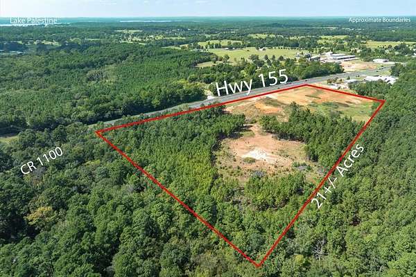 Endless Opportunity Awaits on 21+- Acres with 1300 FT of frontage on Highway 155! Welcome to this exceptional 21+- acre tract offering the perfect blend of beauty, location, and versatility. Whether you're dreaming of building your business, industrial park, multigenerational compound home, expanding your ranching operation, launching a business, or developing a thriving subdivision or retail strip -- this property offers unlimited potential. Gently rolling terrain, scattered mature trees, and open land create a stunning natural backdrop for any vision. With prime frontage along Highway 155, this property provides outstanding accessibility and visibility -- ideal for commercial ventures or future development. Perfectly situated between Tyler and Jacksonville, you'll enjoy peaceful country living while remaining just minutes from shopping, dining, and modern conveniences. Bring your dreams -- whether it's a custom homestead with room for horses, a productive hay or cattle operation, or a new residential community -- this land is ready to make them a reality. Local water provider is Southern Utilities. Video available.