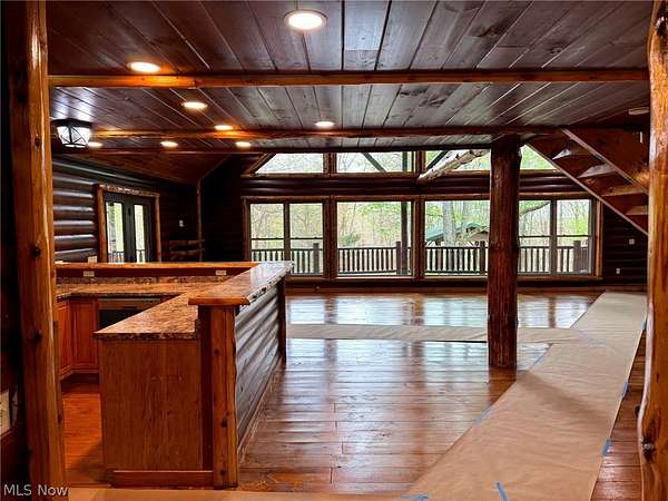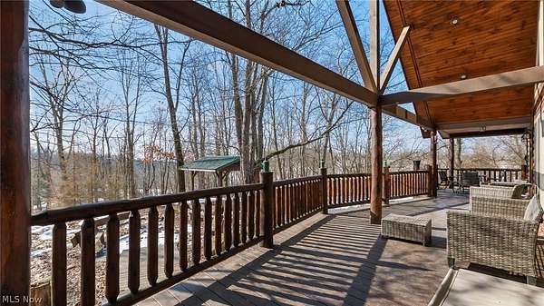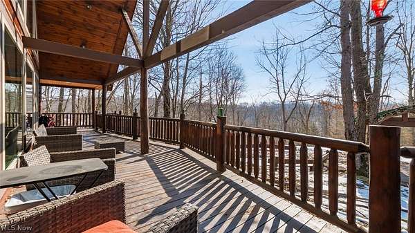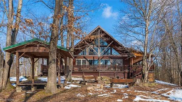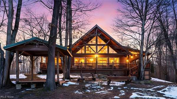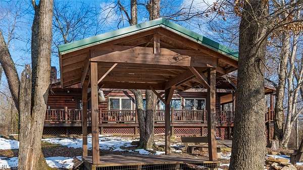 Welcome to 18028 Winterset Ln, nestled in the heart of scenic Winterset Farms - a hidden gem just minutes from Salt Fork State Park. Surrounded by serene, wooded landscapes, this property offers the ultimate balance of rustic charm and modern comfort. Step inside to discover 25-foot vaulted ceilings and an open-concept living space that invites natural light and warmth from a cozy wood-burning stove. The home features four spacious bedrooms, making it ideal for families or guests. The layout is both comfortable and flexible - perfect for use as an extended-stay cabin, company retreat, or private family getaway. Enjoy outdoor living at its best with a wrap-around porch, where you can take in the views of the wooded surroundings and listen to nature's soundtrack. Behind the home, a charming pavilion and firepit area offer a private space for evening gatherings under the stars. Residents of Winterset Farms enjoy access to beautiful common areas featuring stocked ponds, perfect for fishing or simply relaxing by the water. Experience peaceful countryside living just minutes from the outdoor recreation, trails, and lakes of Salt Fork State Park - all while enjoying the privacy, comfort, and natural beauty of Winterset Farms.