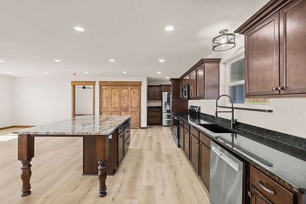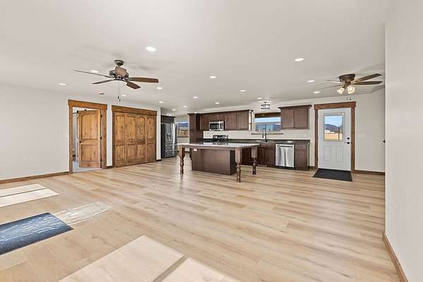 Situated in the desirable West Valley, this brand-new 5-bedroom, 4-bath home sits on a 2.31-acre corner lot with no covenants and captures sweeping mountain and countryside views. It is clean, fresh, and ready for its new owners, having never been occupied. The open-concept design offers a natural flow for both daily living and entertaining, centered around a spacious kitchen with a large island and granite countertops. The expansive covered deck is well-suited for taking in Montana sunsets. Upgraded bathrooms feature modern touch-tone mirrors, while two additional bonus rooms provide flexibility for work or hobby projects. Thoughtful construction details enhance everyday functionality, including a 5' lighted crawl space for easy access and storage, as well as dual water heaters to comfortably support the home's size and usage. An unfinished ADU adds further potential, allowing for customization as guest quarters, a workspace, or possible income-producing use. The property includes a 2-car detached garage, brand new well and septic, brand new fencing, a gated entrance, RV parking with power, room to establish a garden, and additional covered storage for hay or equipment.