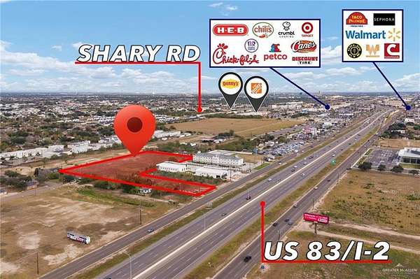 Prime 4.69-acre tract with excellent frontage on E Expressway 83 in Mission, TX. High-visibility location with strong traffic counts, ideal for a wide range of commercial or mixed-use development. Convenient access to major roads and surrounding retail, residential, and business centers. Level land offers flexible layout options for investors or developers. A rare opportunity along one of Mission's main corridors. OWNER FINANCING AVAILABLE!!