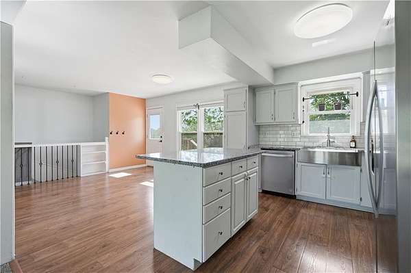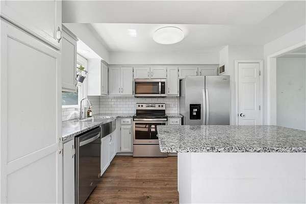 - Ceiling Fan(s), Kitchen Island, Painted Cabinets