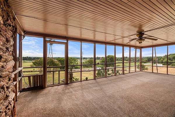 TRULY ONE OF A KIND HISTORIC HOME ON 49+ ACRES WITH STUNNING VIEWS. Step back in time with this amazing petrified rock home built in 1929 Perched atop a hill on over 49 scenic acres with breathtaking and panoramic views of Squaw Valley Golf Course below. Rich in history and character. Featuring a large enclosed screened porch makes it perfect for relaxing and enjoying the peaceful surroundings and unmatched privacy. The petrified rock fireplace in the living room is gorgeous and filled with so much detail. There is approximately 8 acre field below the home that borders Squaw Creek and plenty of property for exploring in the back.