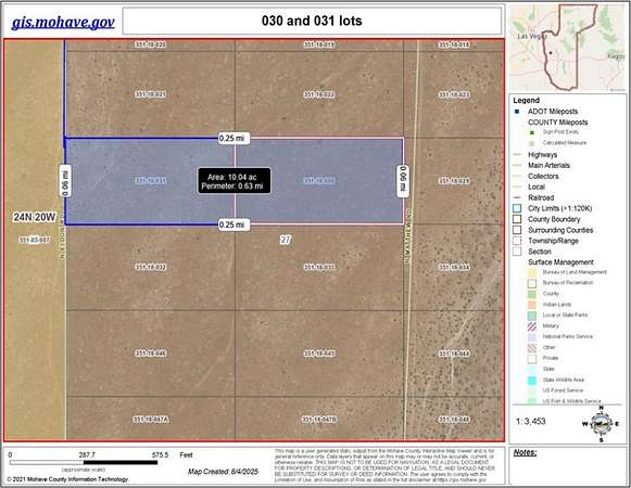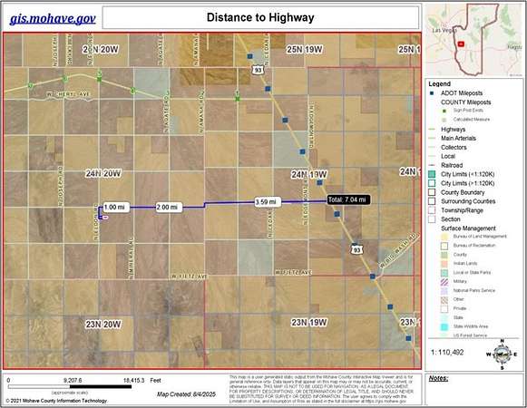 From US Hwy 93, turn west on 21st Street (Reynolds Ave). Continue approx. 7 miles to Eldon Rd. Go left approx 0.5 mile. Parcels are located on the left near GPS coordinates 35.44237 degrees N, -114.411827 degrees W. Use high-clearance vehicle for dirt road travel. Recommend using GPS or parcel map for accurate navigation.