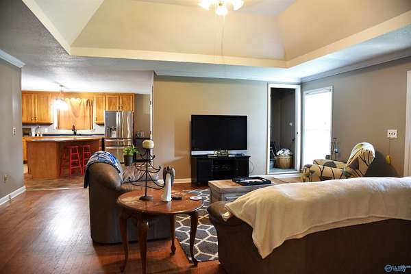Seller will provide 2-1 rate buy down up to $7,000! Spacious 4-Bed, 2-Bath home on 1.5 acres with 3,080 sqft of living space. Centrally located from Guntersville, Gadsden, Birmingham, Cullman, and Huntsville. Large open kitchen with an island. 2 Walk-in closets for ample storage. 2 Bonus rooms on the 2nd level. Extra-large 2-car garage. Additional storage or man cave and storm shelter. Plumbing for 3rd bathroom on 2nd level. Fiber optic and natural gas avail. This home has space, functionality, and safety, making it an ideal choice for those seeking both comfort and peace of mind. Tiny home does not convey, but does have power, county water, and is tied into the main septic.
