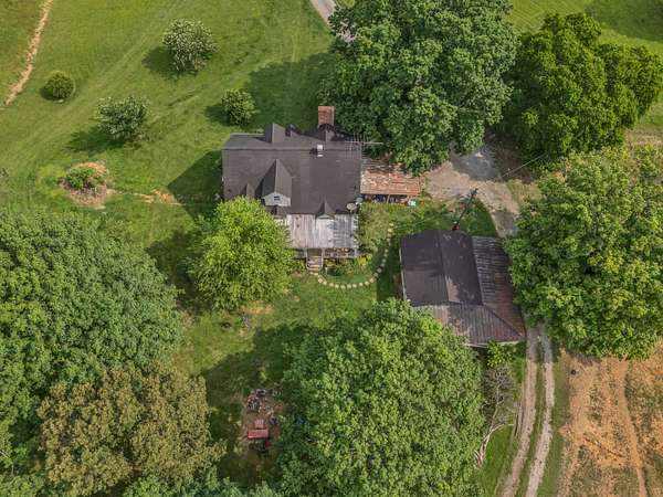 Step into a timeless masterpiece with this 1945 handcrafted farmhouse, built with rich, authentic wood harvested directly from the farm itself. Nestled in history, this home exudes warmth and charm at every turn. Imagine cozy evenings in the den, surrounded by intricately crafted wood walls and gathered around a stunning red brick fireplace, its elegant wooden hearth framing the glow of gas logs. The original hardwood floors, lovingly preserved, flow throughout the downstairs and seamlessly upstairs, telling a story of craftsmanship and enduring quality. Unwind on the charming tin roof covered back porch, where breathtaking views of your private, tree-lined 21.9 acres invite serenity and endless possibilities. This isn't just a house--it's a legacy, offering a rare blend of historic charm and expansive natural beauty, waiting for you to call it home. Don't miss your chance to own this extraordinary retreat! There are 2 barns, a shed and a workshop area on the property.