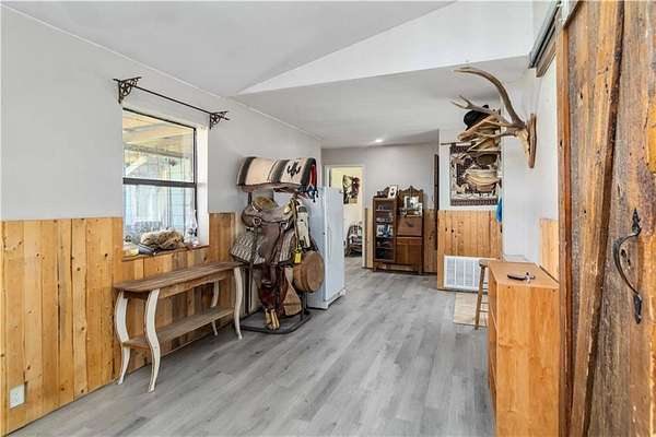 The fully fenced land is ready for farm animals and includes raised garden beds to start a homestead lifestyle. The stocked pond creates a beautiful setting for fishing & relaxing.
