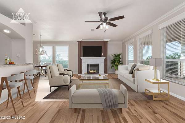 Experience comfort and peaceful mountain views in this gorgeous 3-bedroom home on over 4 acres. Bring your toys & horses. Enjoy the Vail evenings under the moon & stars as they shine bright in this part of the country. Inside, you'll find bright living areas showcasing wood flooring, an abundance of natural light, a cozy fireplace and neutral paint throughout. The impeccable kitchen awaits your culinary adventures, equipped with a Thor Range, recessed lighting, ample cabinetry, granite countertops, stainless steel appliances, an island AND a breakfast bar. The serene main bedroom and great room boasts some of the best views of the Rincon Mountains. Enjoy your days and nights on several patio areas taking in Rincon Peak and the wide open views and incredible outdoor living spaces. Nothing was missed in the building and placement of this home. The views and the outside living areas were very well thought out to take full advantage of what the Rincon Valley has to offer. Come see for yourself!!