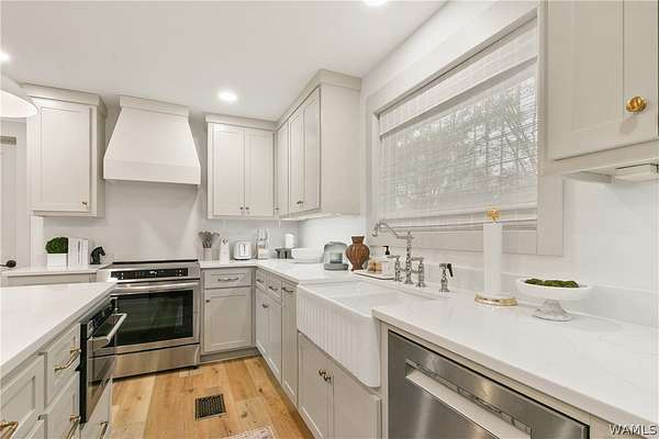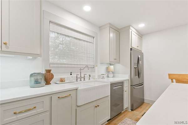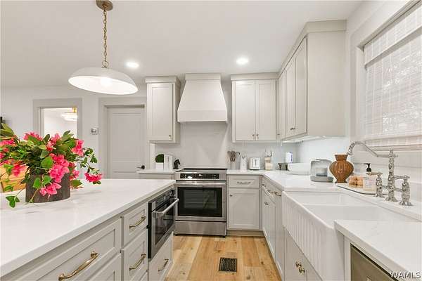 Gorgeous, completely renovated Black Warrior Riverfront home on over 3-1/2 acres! 3BR/1-1/2BA home is located directly on BW River, mere minutes from Demopolis.This stunning home was recently renovated from top to bottom, with new metal roof, Hardie board exterior siding, huge porch with split staircase & tongue and groove ceilings and ceiling fans, all new interior plumbing, including a beautiful tile shower, new toilet, and vanity with new sink and faucet, new water heater, new electrical wiring & switches/electrical outlets, interior and exterior doors, windows, trim, new kitchen cabinetry, new stainless appliances, new apron sink and faucet, solid surface countertops, new "Mute Step" waterproof luxury vinyl plank flooring throughout, new painted aluminum fencing, & more! Call today!
