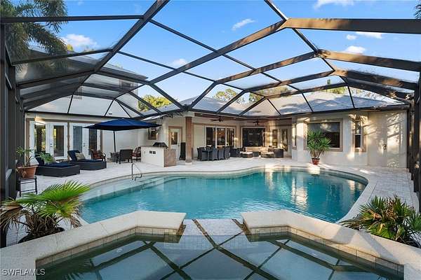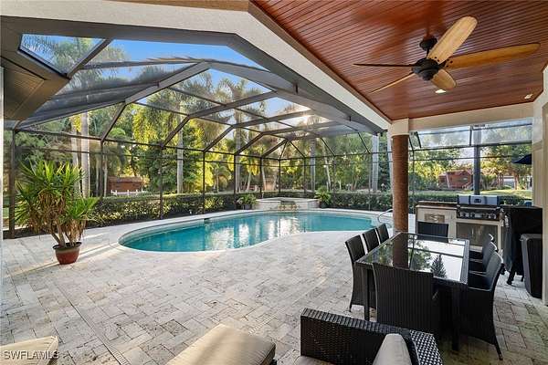 A Rare Opportunity to Own 5.77 ACRES of Estate Living Close to Downtown Naples: This extraordinary, custom-built Florida home offers a rare opportunity to own a sprawling 5.77-acre estate just moments from the vibrant heart of downtown Naples. With its private gated entrance, this residence provides a serene and expansive environment perfect for those seeking both luxury and convenience. Designed for casual estate living, this spacious home features four large bedrooms plus a den, four full bathrooms, and one half bath. The 32' x 22' entertainment room offers ample space for hosting gatherings, while an in-law apartment with its own kitchen, full bath, walk-in closet, and screened balcony provides comfort and privacy for guests or extended family. Exquisite Design and Luxury Features: The interiors boast stunning custom details throughout, from elegant wood finishes to beautiful crown molding and upscale fixtures. For wine enthusiasts, the home includes a wine cellar, ensuring your collection is stored with the utmost care. The oversized lanai is a true highlight, offering a stunning setting for outdoor living. Whether you're relaxing by the gorgeous pool and spa, enjoying meals from the outdoor kitchen, or simply taking in the tranquil views, this space is designed to impress. With plenty of room to accommodate family, guests, and gatherings, the home offers a perfect balance of comfort and functionality. A Private Sanctuary and Ample Space for Outdoor Living: This fully fenced property offers not only privacy but also a wealth of opportunities for outdoor living. With enough room for horses, farm animals, and pets, the estate is perfect for those who desire an active, nature-filled lifestyle. A serene lagoon with a private beach and an island featuring a charming gazebo provides a peaceful retreat for reflection or leisurely afternoons. Additional features of the property include a 1,500 square-foot barn equipped with power and lights, making it ideal for storage, hobbies, or even as a workshop. A thriving palm tree farm adds a distinctive touch to the landscape, adding both beauty and function to this extraordinary estate. Close to Everything You Love: This exceptional property offers the ultimate in privacy and luxury, yet remains conveniently located just minutes from the best that Naples has to offer. Enjoy easy access to world-class shopping, dining, and the renowned Fifth Avenue. The pristine beaches of Naples are just a short drive away, and with proximity to I-75, you'll have quick access to all of Southwest Florida's attractions. Whether you are seeking a peaceful sanctuary or an estate that can accommodate a large family and guests, this home offers the perfect balance of seclusion and convenience. Your Dream Estate Awaits: If you've been searching for the perfect family estate or private sanctuary, this rare 5.77-acre property near downtown Naples is an opportunity you don't want to miss. This IS where you want to live!
