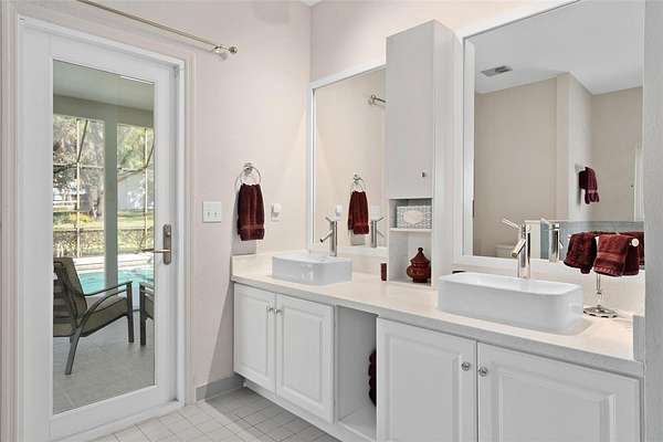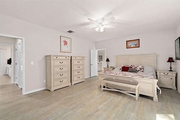 Outdoor amenities include a screened pool, spa and porch overlooking the lovely yard and stables. Equine enthusiasts will appreciate the five-stall stable with tack room, corral, and pasture. Additional structures include multiple sheds and outbuildings spread across the property. The garage features a sleek look with cabinets for storage and parking that can accommodate four cars. Sports lovers can enjoy their own lighted tennis court that also includes a basketball hoop. The entire compound benefits from dusk-to-dawn lighting along with an extensive sprinkler system for easy maintenance. Efficiency has been prioritized in this home’s design with minimal running costs ensured by an installed $30k 11.7 KW peak solar system controlled by an app. Other recent updates include new doors & windows (2020) and metal roof installation (2020). Water heater exchange system. Water supply comes from a well equipped with water softener, chlorinator and carbon filter ensuring quality supply throughout the house. Safety is prioritized with a monitored security system and a gated community setting. Longwood, FL offers a plethora of amenities. Enjoy easy access to quality schools, shopping centers, health facilities, recreational parks, and dining options. Its location also provides convenient commute times to nearby cities. Every aspect of this home has been thoughtfully designed and meticulously maintained to create a truly unique living experience. You are invited to step into this world of comfort and luxury at 1805 Meadowbend Dr. Termite Bond in effect. Items that do not convey: Big Cranes and Bear in Garden and Tesla Charger in Garage.