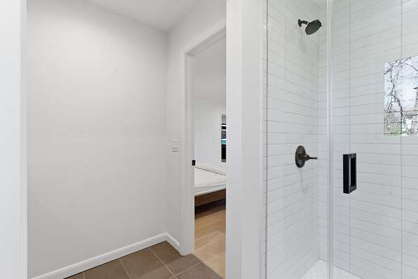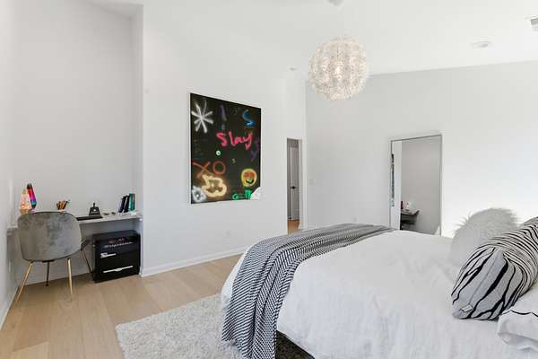Additional features include remote-controlled blinds in the front bedroom and bath, and a two-car garage with tandem depth accommodating up to four vehicles or additional storage.
