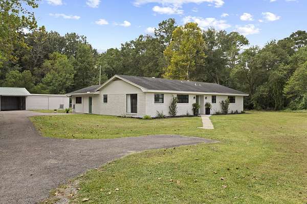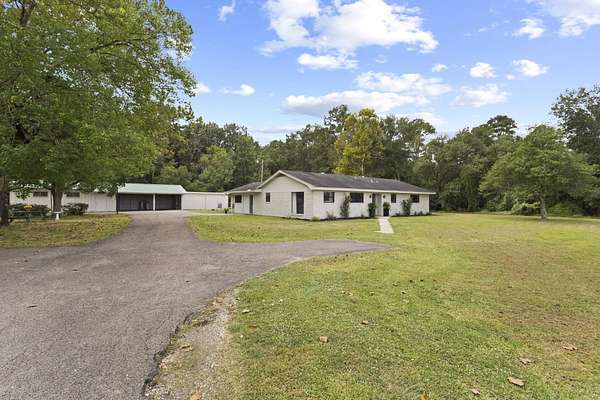Est $2,049/moNEVER FLOODED - Discover the perfect blend of comfort and convenience with this nearly 3-acre property featuring prime highway frontage and no history of flooding. The large home offers oversized rooms, including 4 bedrooms, 2 full bathrooms, a dining room, living room, and den. Large kitchen with eat in breakfast room provides plenty of space for gatherings. Enjoy the convenience of the indoor utility room. The property also boasts a versatile workshop, complete with an attached air-conditioned outdoor entertainment area, plus a separate RV carport. With plenty of room to spread out this property is ready to suit all your needs.