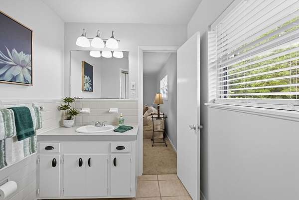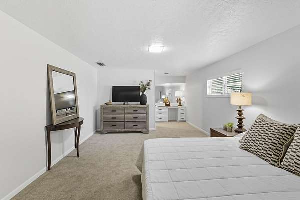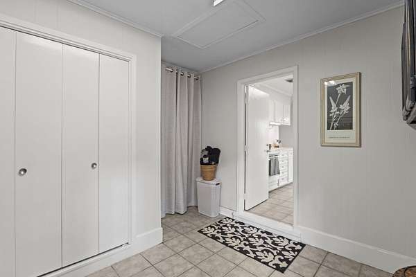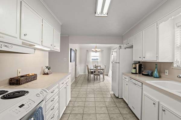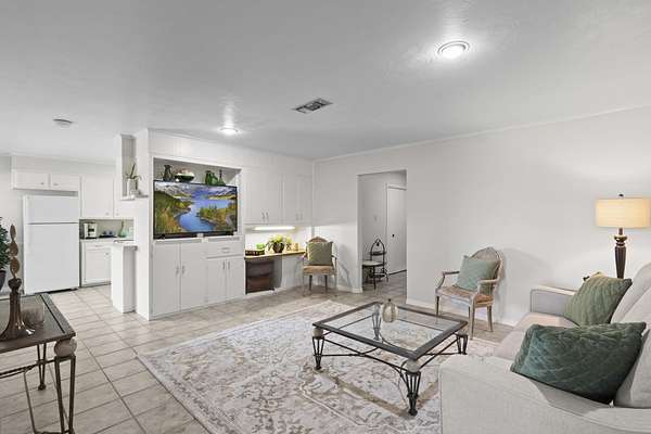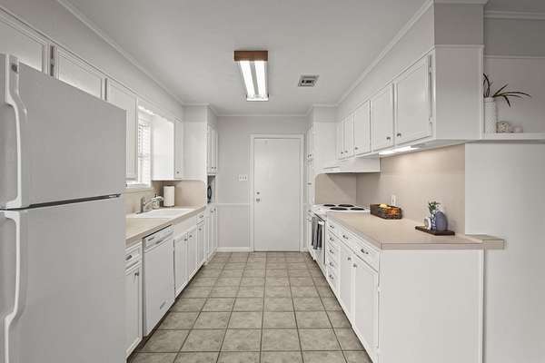 - Bookcase, Carpeting, Ceiling Fan(s), Draperies, Free Standing Range, Inside Utility Room, SLD Surface Countertops, Sheetrock, Tile Floors