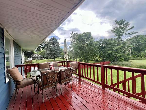 OPEN HOUSE SATURDAY, OCTOBER 4, 2025 from 1pm to 3pm. Great Central Location!!! This beautiful 4 bed 2 bath ranch home is ideally located just outside Hillsdale's city limits. Situated on over 2 acres, this home has a rural feel, but possesses all the advantages of city conveniences such as being a stone's throw from shopping, professional services, schools & more. Nice layout features a spacious kitchen w/ dining area, living room w/ fireplace, 2 large bedrooms & a full bath w/ laundry. Two car attached garage with a newly installed wood burner. The wonderful rear deck is perfect for relaxing, enjoying dining while overlooking the beautiful views & sunsets. The finished lower level has a separate entrance. Features include a kitchen, full bath, 2 beds & living room w/ fireplace. Mother-in-law suite? Rental? BNB? You decide what's best for you!