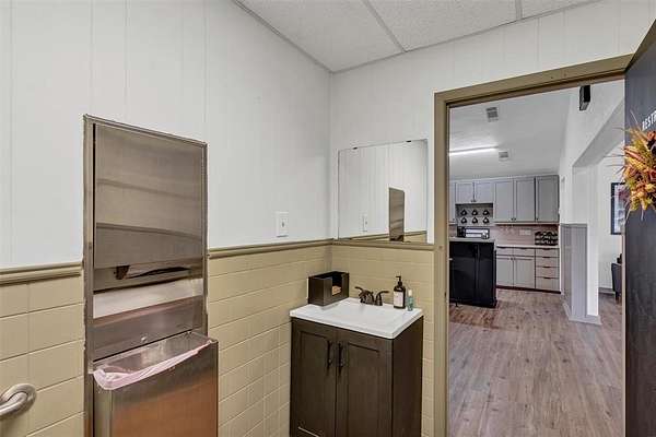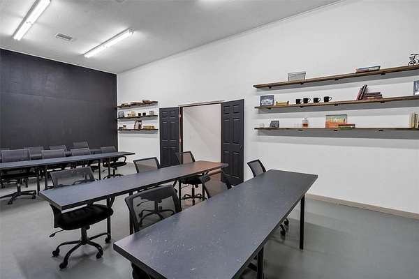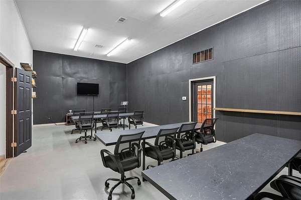 Inside, you'll find a large open room perfect for classes, meetings, trainings or events, along with two private offices, two bathrooms and a dedicated conference room for more focused work. A full kitchen adds convenience for staff or events, while a rear storage area with a roll-up door provides functionality for equipment or deliveries.