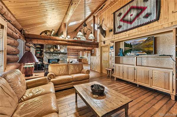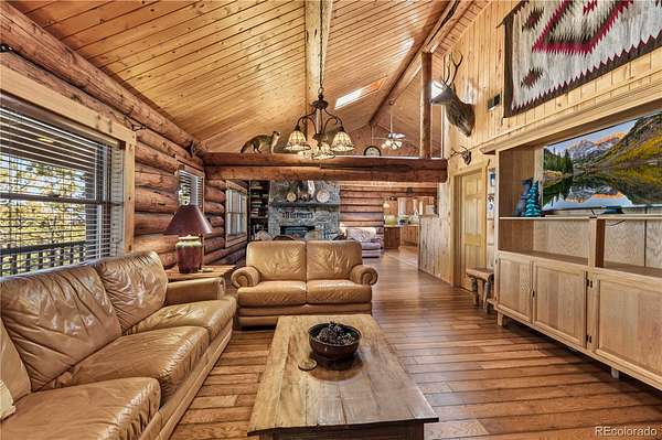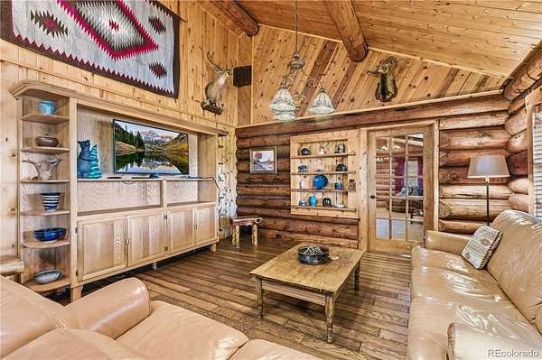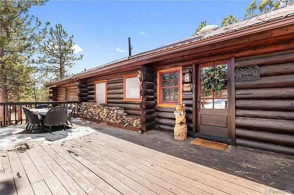 Set among mature pines in Ranch of the Rockies, this fully furnished Colorado log home offers a turnkey mountain retreat designed for both personal enjoyment and STR income potential.