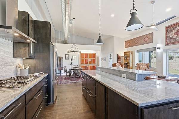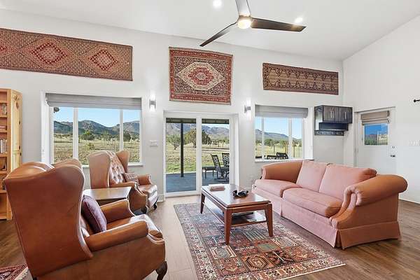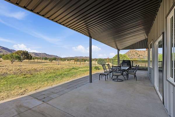 Est $3,572/moExceptional custom built 3BR/3BA home on 14.5 ac with stunning Davis Mtn views. Open layout with vaulted ceiling. Gourmet kitchen: quartzite counters, large island, soft close drawers. Primary suite with spa-like bath. Quality finishes: custom maple cabinetry throughout, Italian tiled baths, & Pella windows. Integrated 2200+SqFt garage/shop/storage with enclosed RV bay & a separate tractor/utility barn. Enphase solar w/battery backup. Strong well. Fenced garden & fruit trees. Private hwy access.