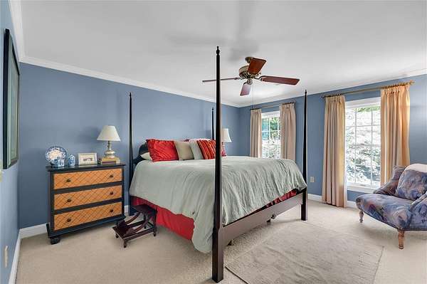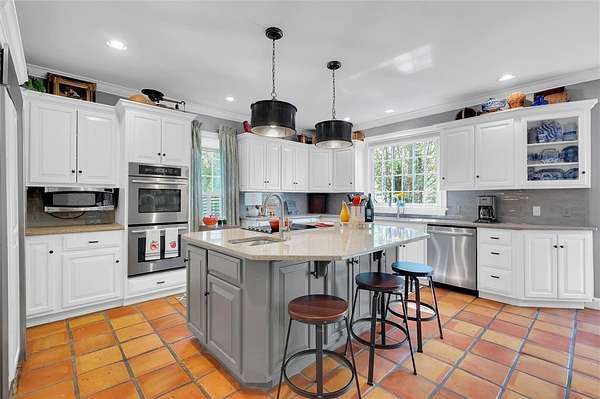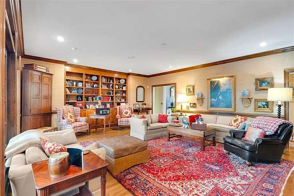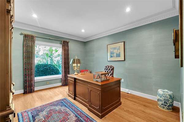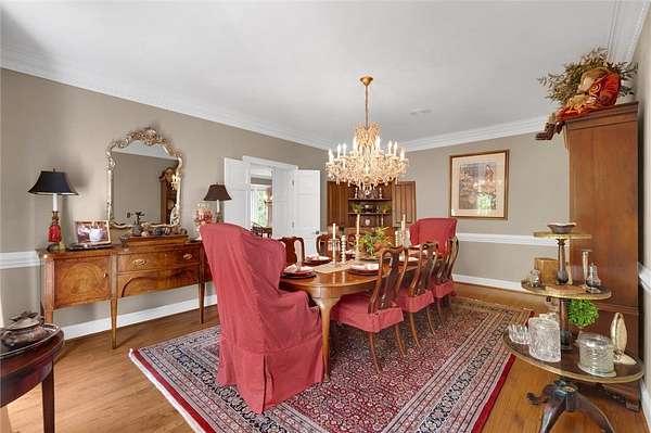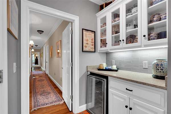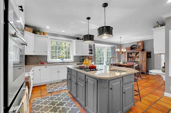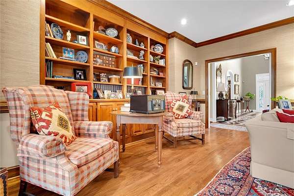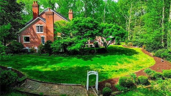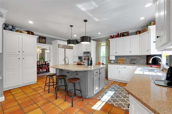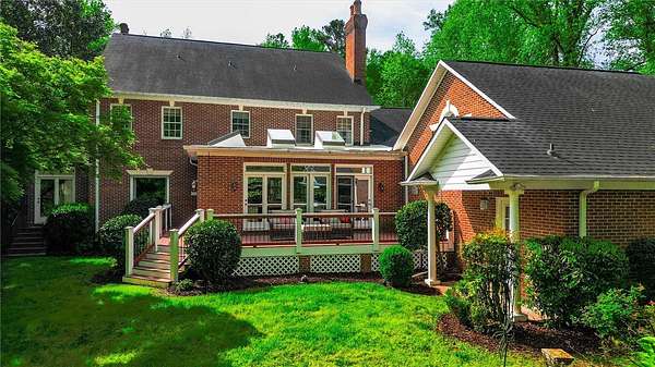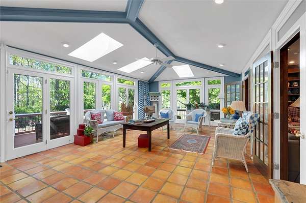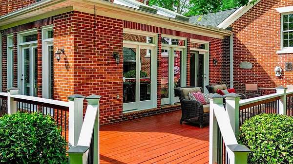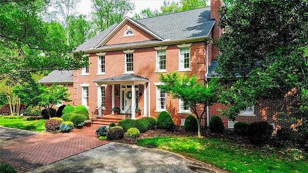 Tucked away on a rare and remarkably private 3.6-acre homesite backing to Hole #7 of Thornblade Country Club, this custom all-brick estate is offered for the first time by its original owner. Encompassing nearly 6,600 square feet of thoughtfully curated living space, the home is a masterclass in timeless craftsmanship, grand scale, and tranquil surroundings-an extraordinary offering in one of the area's most coveted settings. Set gracefully back from the road, the approach establishes an immediate sense of arrival and seclusion. Inside, a beautifully flowing floorplan balances impressive proportions with warm livability, equally suited for intimate daily life and sophisticated entertaining. Imported 3/4" handmade Mexican tile adorns the floor of the chef's kitchen, anchored by quartz countertops, a Sub-Zero refrigerator, JennAir appliances, and a pantry with slide-out shelves, opens to a warm breakfast area and seamlessly into the heart of the home. The expansive family room is richly appointed with stained ash hardwood cabinets and trim, a wood-burning fireplace, custom built-ins, and a wet bar, then transitions effortlessly into an oversized sunroom overlooking the peaceful grounds and manicured fairway beyond. Refined formal spaces include an elegant dining room and a gracious living room with a gas fireplace (can be converted back to wood-burning)-ideal for hosting gatherings or enjoying quiet moments in style. The main-level primary suite is a true sanctuary, featuring its own gas fireplace that can also be converted back to wood-burning, dual walk-in closets, and a luxurious ensuite bath with separate vanities, jetted soaking tub, and separate shower. A private office on the main level provides a distinguished work-from-home setting or additional flex space. Upstairs, dual staircases lead to four generously sized bedrooms. Two enjoy private ensuite baths, while the others share a well-appointed Jack-and-Jill. A spacious sitting/game room and an additional flex room offer endless possibilities for media, hobbies, or guest accommodations. A separately accessed bonus room above the garage adds yet another layer of versatility. Exceptional storage is found throughout, including a large walk-in attic accessed from the upper flex room. The oversized three-car garage is thoughtfully designed...already plumbed for a bath and offering additional storage capacity. Outdoor living rivals the interior in both beauty and function. A sprawling deck invites relaxation and entertaining while overlooking the private landscape and golf course backdrop. The additional acreage provides rare opportunities for gardens, expanded outdoor living areas, or simply enjoying the level of privacy rarely found in this location. Zoned for award-winning schools and convenient to every modern amenity, this meticulously maintained custom residence presents a rare opportunity to own a legacy property where privacy, elegance, and enduring quality converge.