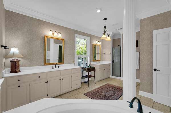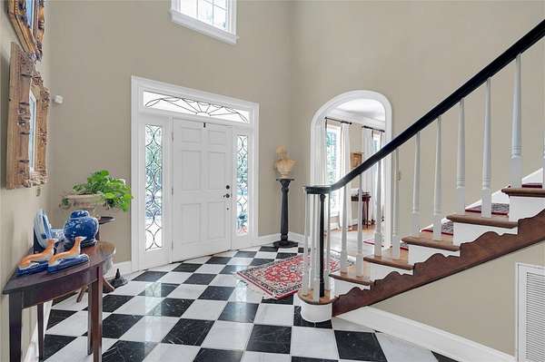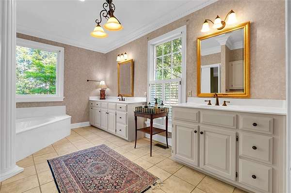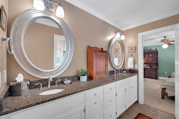- Bath In Primary Bedroom, Bathtub, Bookcases, Built In Features, Ceiling Fans, Central Vacuum, Dual Sinks, Entrance Foyer, Fireplace, French Doors Atrium Doors, Granite Counters, High Ceilings, Jack And Jill Bath, Jetted Tub, Main Level Primary, Permanent Attic Stairs, Sitting Area In Primary, Smooth Ceilings, Wet Bar