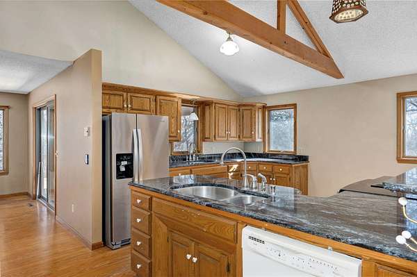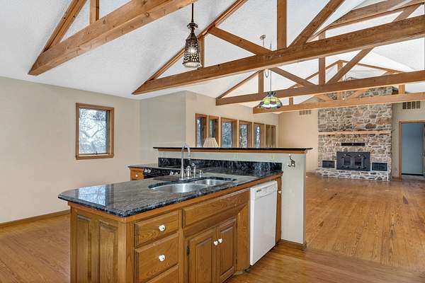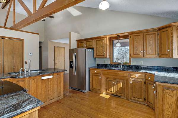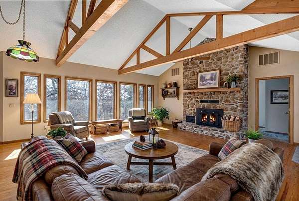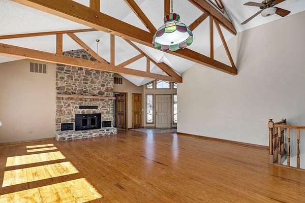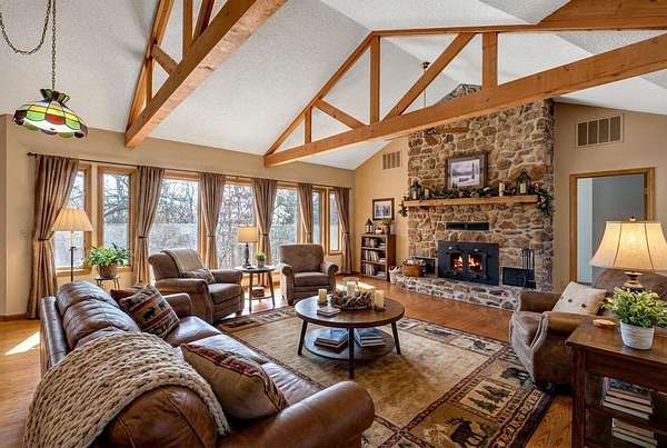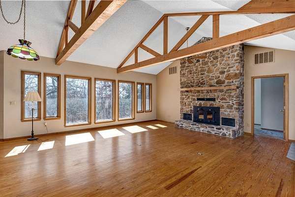 Welcome to your dream country retreat! This custom-built, one-owner home offers 4 bedrooms and 3 bathrooms, thoughtfully designed for comfort and space. Enjoy cozy evenings with a wood-burning fireplace on the main level and a wood stove downstairs. The spacious kitchen is a standout, featuring two sinks and two pantries--perfect for entertaining and everyday living.The finished basement is exceptionally large, offering two bedrooms and two additional storage rooms, providing endless flexibility for guests, hobbies, or extra living space. With over 2,800 square feet, this home is ideal for hosting gatherings of any size and is truly move-in ready with all the bells and whistles.Situated on 6 stunning wooded acres with no neighbors in sight, the property offers unmatched privacy and abundant wildlife. Outdoor features include established flower beds and a shop. Washer, dryer, refrigerator, and mower are all included, making this an incredible turnkey opportunity. Peaceful country living at its finest!