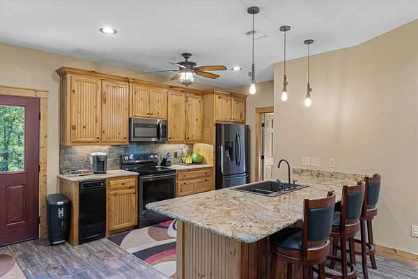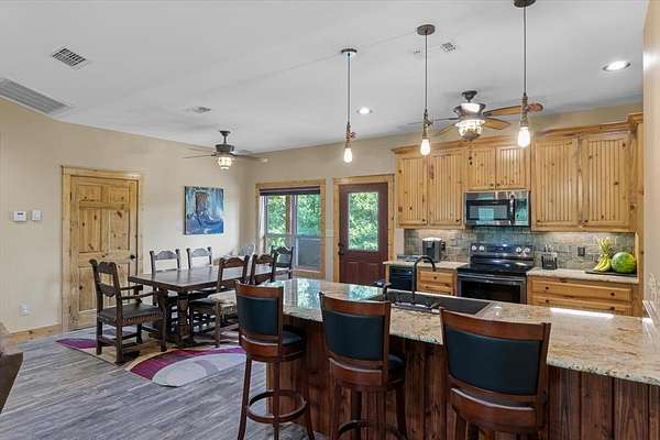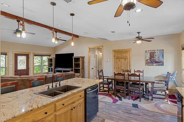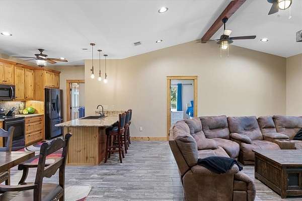 Secluded on 3 acres and surrounded by mature trees, this 3-bedroom, 2.5bath home offers the perfect blend of rustic charm and modern comfort. The open concept design features a vaulted living room ceiling with exposed beam, granite countertops, custom cabinetry, and a spacious kitchen island with seating. Relax on the front porch and take in the peace, nature, and abundant wildlife that make this property feel like a private retreat. A covered carport adds convenience, while the wooded setting provides seclusion. An added opportunity awaits with the neighboring property also available for purchase. 100 acres with a 2,500 sq. ft. home and established trails connecting the two. Together, they create a rare chance to expand your homestead, recreational space, or investment. See MLS 21049098