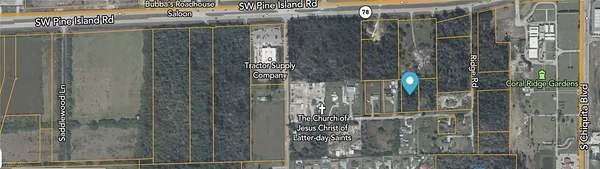 1.3 acre PRIME COMMERCIAL land in highly sought after PINE ISLAND ROAD CORRIDOR (PIRC) for sale for $425,000.00. Abuts Pine Island Road frontage. ENDLESS possibilities for uses: Bank, Bar / Brewery, Distillery, Daycare Facility, Pharmacy, Cultural Facility, Hobby Store, Manufacturing, Nightclub, Specialty Shop, Veterinary Clinic, Restaurant, Warehouse, Retail, Professional, Florist Shop, Insurance Company, Multi-family dwellings, Recreation Facility, Healthcare Facility, Medical Office. NEARBY existing development includes (but not limited to) Bonefish Restuarant, Aldi grocery store, ABC liquor, Publix grocery, Walgreens, 7/11 gas station, McDonalds, Walmart, Office Depot, Kohls, First Watch, City Mattress, Target, WaWa, Arbys, Wendys, Taco Bell, Sam's Club, and much more. Some of the nearby current residential developments include Sandoval Community, with 1,523 homes and Cape Royal Royal Golf Club with 483 homes and 27 hole public golf course. NEARBY FUTURE DEVELOPMENT will bring new rooftops by the thousands, as well as new commercial space, including CORAL GROVE TOWN CENTER at 2301 SW Pine Island Rd with 131 acres on Pine Island Rd adjacent to Bubba's Roadhouse Restaurant, as mixed use community with 1234 luxury apartments, 125 room hotel, 350,000 square feet of space for retail, dining and entertainment, with two public parks and 5412 parking spaces. WALMART SUPERCENTER is also anticipated at 2210 SW Pine Island Rd. POINTE GRAND at 1016 SW 20th Avenue will be multifamily residential development with two commercial outparcels. CHIQUITA FALLS at 600 Chiquita Blvd will have 897 multifamily apartments in 6 buildings, a lake and commercial parcel. and Much More coming to this area of Cape Coral.