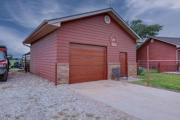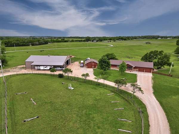 Here is your chance to own an incredible equine property that is ready for the next family! This property is country living with city utilities and is located only 5 minutes from downtown Winfield! This property is cross fenced and there are many things to love about it, such as a large lighted riding arena in front of the property. The stable area on the north has three stalls and a tack room plus a 60' round pen. South of the house is a barn with a 50' x 80' indoor lighted riding arena. The lean to on the west side of the barn contains six 8' x 10' stalls. The two end stalls can be set up for a larger foaling area. The primary grass in the pasture is bermuda. The 1.5 acre pond is stocked with hybrid blue gill and catfish. The detached oversized garage provides space to park a vehicle with room to store tack and tools. There is a 220V hook up for a welder and a large work bench. You will be comfortable working in this building all year since it is insulated and has heat and air. In front is a cement apron and a 12' heavy duty pipe hitching rail which is great for working on equipment and horses. RV hook ups are located at the shop and the barn. With an ideal property for horses, cattle or other animals what else could you possible need? A house! The house has four bedrooms, two full baths, a cozy fireplace in the living room, large kitchen (all appliances will remain), immense deck and great views. The full walk out basement exits onto a large patio that has a 220V hook up for a hot tub. The attached oversized two car garage will hold a large pick up with room to spare and is insulated and heated. This home with satisfy all your needs. To fully appreciate this property, you need to see it in person. Please be sure to schedule your appointment to see this terrific property right away.