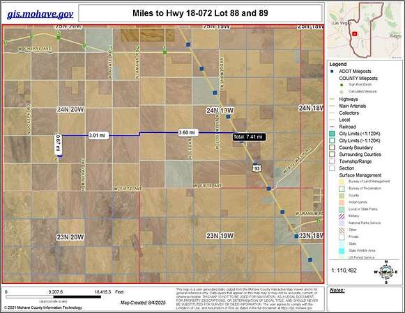 From US Hwy 93, turn west on 21st Street (Reynolds Ave). Follow dirt road approximately 6.6 miles. turn left (south) for .67 mile. Parcels are located near GPS coordinates 35.436019 N, -114.411824 W. Use GPS and parcel maps for accurate location. High-clearance vehicle recommended.