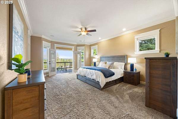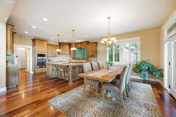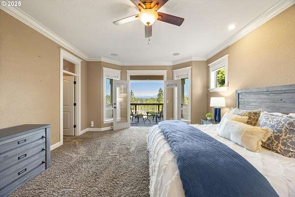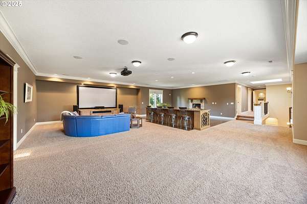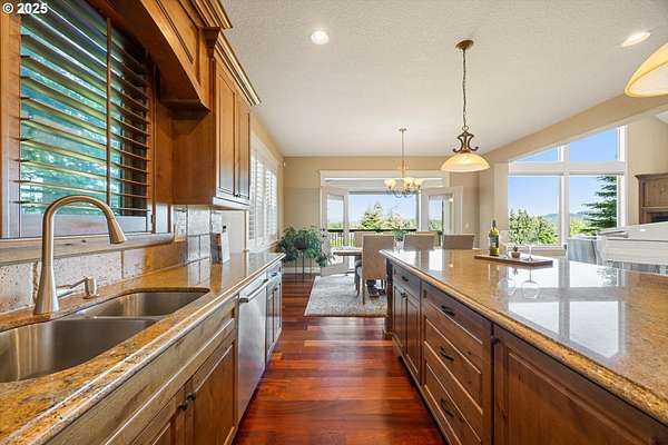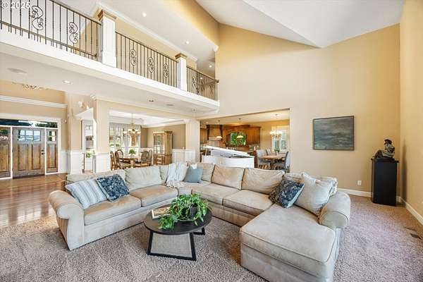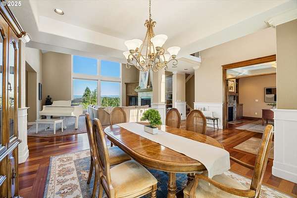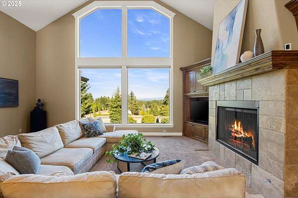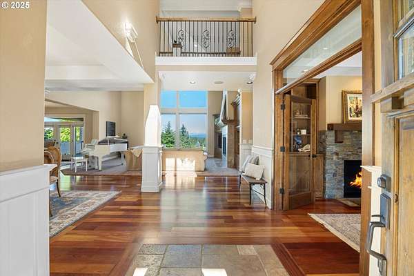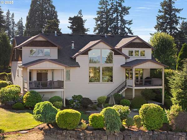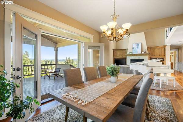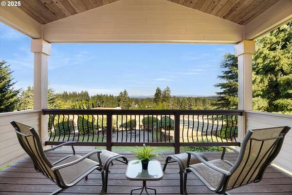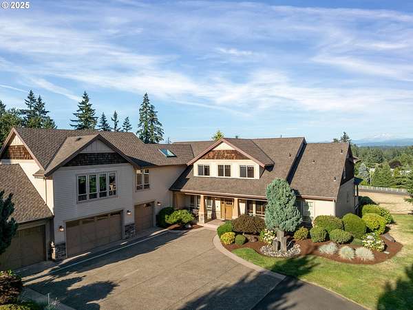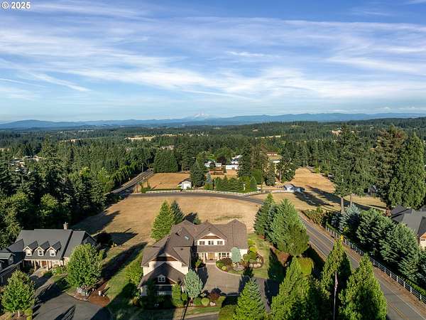 Welcome to your country estate-where a breathtaking Mt Hood view, expansive outdoor space, and a thoughtfully designed home come together in perfect harmony. This spacious 5-bedroom, 5-bathroom residence offers room for everyone, with a flexible layout ideal for entertaining or multi-generational living. Set on a 2.16-acre lot with lush landscaping, the property features multiple covered decks and a patio-all perfect for soaking in the serene surroundings and panoramic views. Inside, you'll find a dramatic main living area with a grand fireplace, high ceilings, and an unobstructed view of Mt Hood. Upstairs, find an expansive game and theater room with a built-in island, fireplace, and generous gathering spaces filled with natural light. The open-concept layout with soaring ceilings and large windows flows beautifully to the outdoors, offering seamless indoor-outdoor living. With 5 bedrooms, 3 with en-suite bathrooms, you'll have plenty of room. Whether you're hosting a summer party, relaxing under the stars, or enjoying a quiet evening inside in front of the fireplace, this home invites you to unwind in comfort and style. Located in a rural setting, yet conveniently close to town, this is the country lifestyle you've been waiting for-spacious, scenic, and move-in ready.