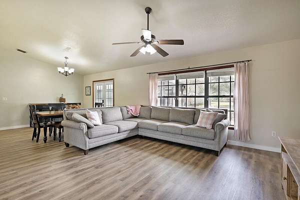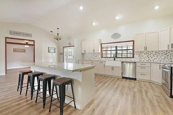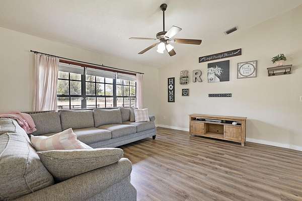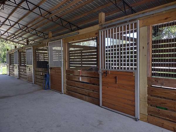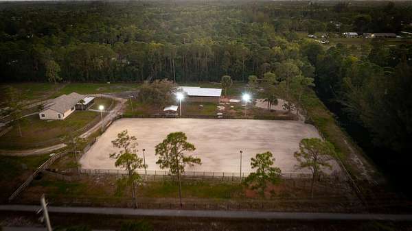 Super location, move right in for the 2026 EQUESTRIAN SHOW SEASON! Fabulous 5.50 acre farm with CBS 3/2 home with office. Home has a 2021 ROOF, remodeled kitchen with farm sink and large prep/snack bar island, office & 30 x 15' screened porch, home has wood plank vinyl flooring throughout. Center aisle barn has 13 stalls also a separated 2 RUN-IN stall barn with small paddocks, 15 STALLS TOTAL. Air conditioned Tack & Feed rooms. LIGHTED ARENA is 230' X 140', perfect for regulation dressage ring or all weather jumping arena. 6 large paddocks, Barn has separate electric meter and RV hookup. Property is perfect for a riding school as there are over 30k families within a 10 mile radius including the Westlake community. All measurements are approximations and subject to error