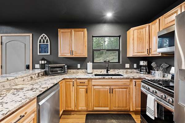 - Fireplace, Main Level Primary, Open Floorplan, Vaulted Ceilings, Walk In Closets, Wet Bar, Wired For Sound