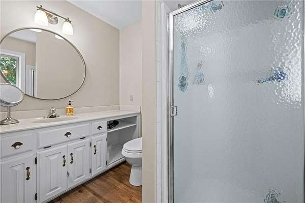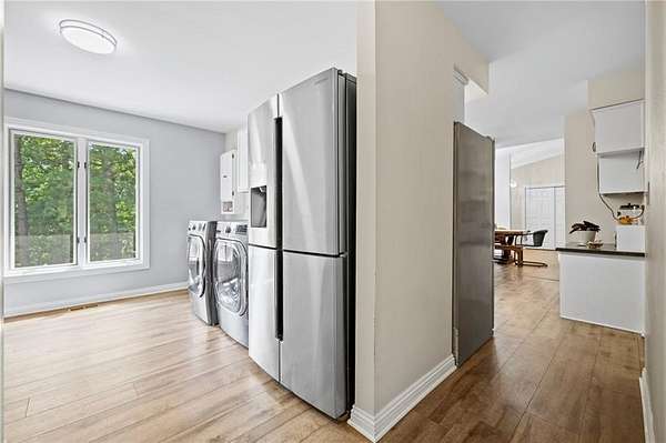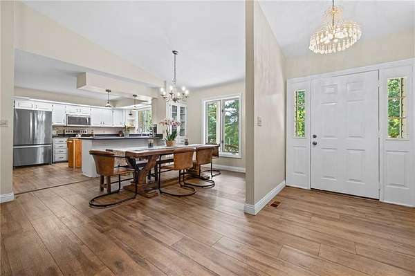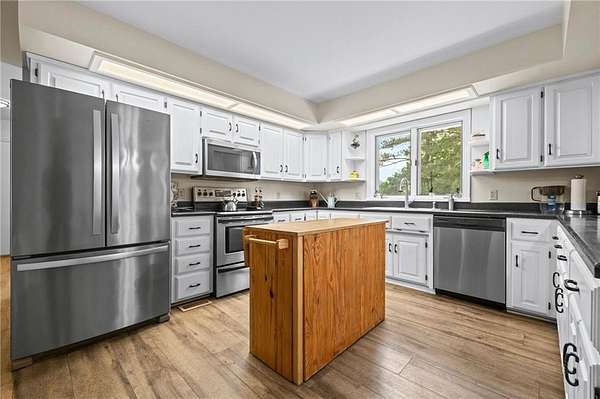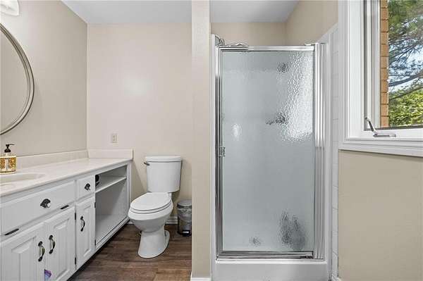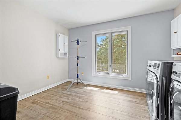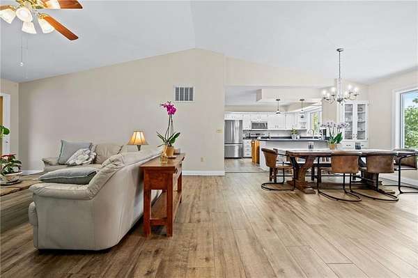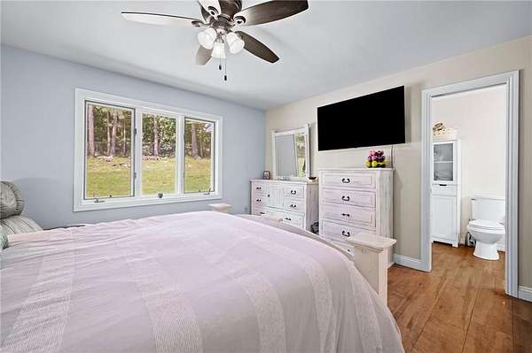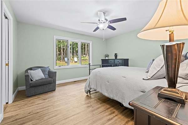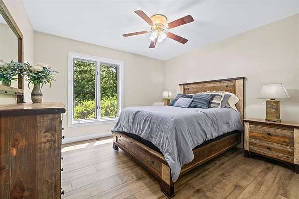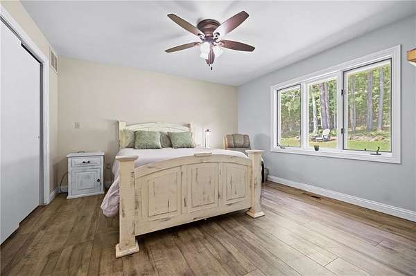 The property includes two adjoining parcels totaling 8 acres, offering ample space and seclusion. Inside, you'll find two spacious primary ensuite bedrooms and luxury vinyl flooring throughout. Abundant natural light fills every room, thanks to high-quality Andersen windows.