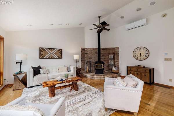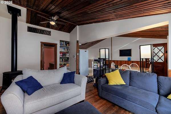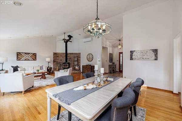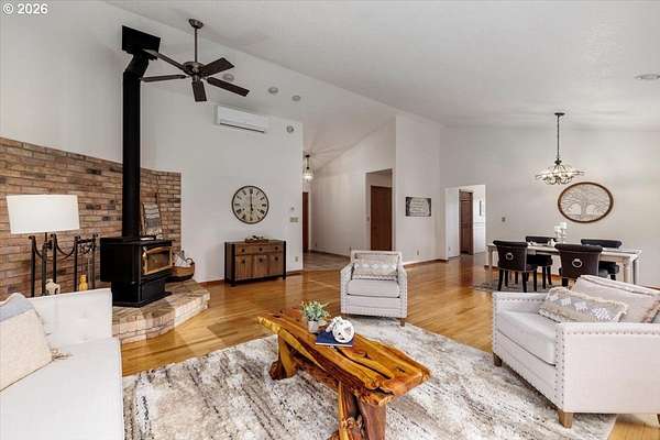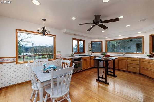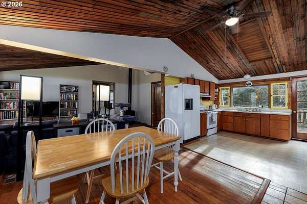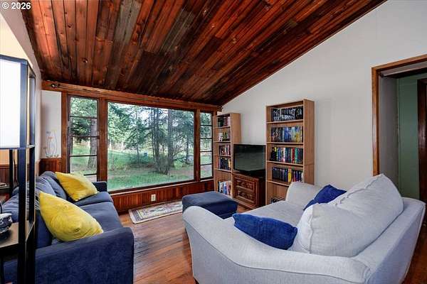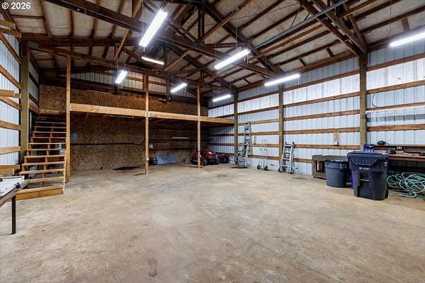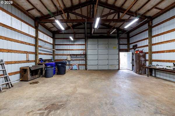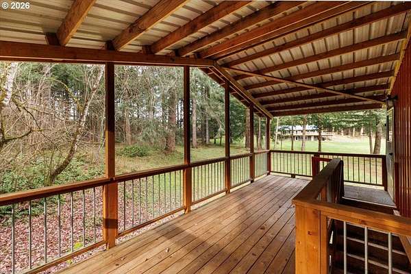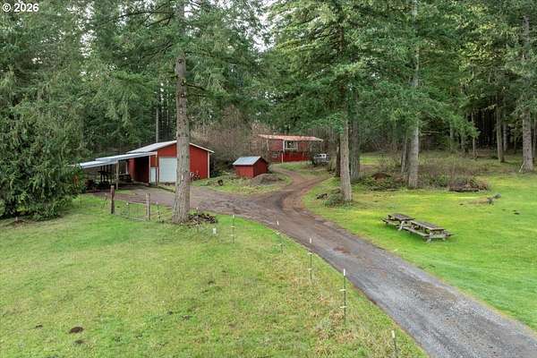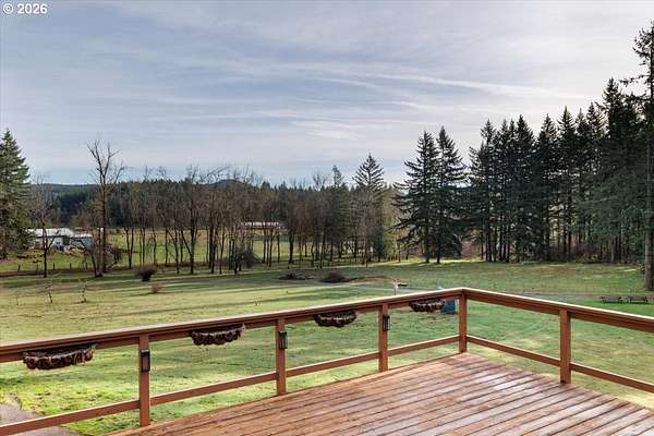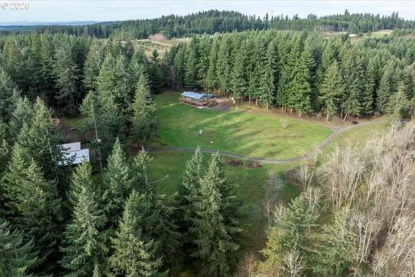 Offered for the first time, this custom-built home is set on 27 private acres of rolling pastures and wooded forest, offering exceptional privacy, versatility, and long-term potential.The main home features 3 bedrooms and 2.5 bathrooms, including a primary suite on the main level with en suite bath. Large windows capture peaceful views of surrounding pastures and forest, filling the home with natural light. A wood-burning fireplace provides a warm focal point, while an expansive deck overlooks open pasture and mature timber-perfect for entertaining or relaxing in a serene, natural setting.The daylight basement expands the living space with two bedrooms and a full bathroom, an open bonus room with exterior access, and a separate mud room that could also function as a home office, offering excellent flexibility for a variety of uses.The property also includes a detached accessory structure located near the edge of the forest. This versatile space includes two rooms and one bathroom, along with dedicated storage beneath the structure. The layout is well suited for uses such as a home office, craft or hobby room, studio, or workout space, providing a private and quiet environment separate from the main home.A large shop with a concrete floor and mezzanine offers abundant workspace and storage, and a full bathroom is attached to the shop, adding convenience for projects, hobbies, or outdoor work.The land itself is a standout feature, offering 27 acres that may be dividable under Measure 49 (buyer to perform due diligence) along with harvestable timber, creating potential for future use or investment.A rare opportunity where privacy, natural beauty, and flexible spaces come together in a truly special setting.