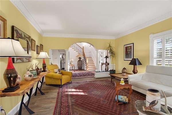 Luxury waterfront estate on 3 private acres with 226' of deep-water frontage and expansive views. A pier, dock, and boat slips (built in 2022) are already in place, making this a rare opportunity for boating enthusiasts. A detached 3-car garage with 12' doors and a large workshop/man cave (2022) offers incredible flexibility for hobbies, storage, or projects. Inside, the home blends classic charm with thoughtful updates. Formal living and dining rooms feature plantation shutters and detailed molding, while the renovated kitchen is bright and open with direct water views, ideal for entertaining. The rear family room is perfectly positioned to enjoy both sunrise and sunset over the water. A flexible first-floor room with pocket doors can serve as a bedroom or office. The primary suite features hardwood floors and a private balcony overlooking the water. Additional highlights include a whole-house generator, solar panels, a brick waterfront patio, and raised garden beds. So much more!
