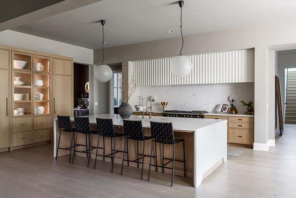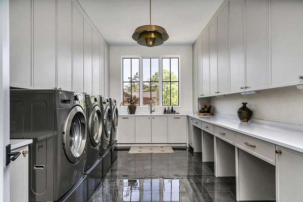 Inside, you’re greeted by marble floors, a grand foyer, and natural light that carries throughout the home. The kitchen is as functional as it is beautiful, anchored by a handmade-in-France Lacanche range, SubZero columns, two sinks with dishwashers, and a marble-clad wine bar. A full scullery and seamless flow into the main living spaces make it ideal for both everyday living and entertaining. The primary suite is a true retreat, featuring a spa-like bath, soaking tub, and a spacious walk-in closet.